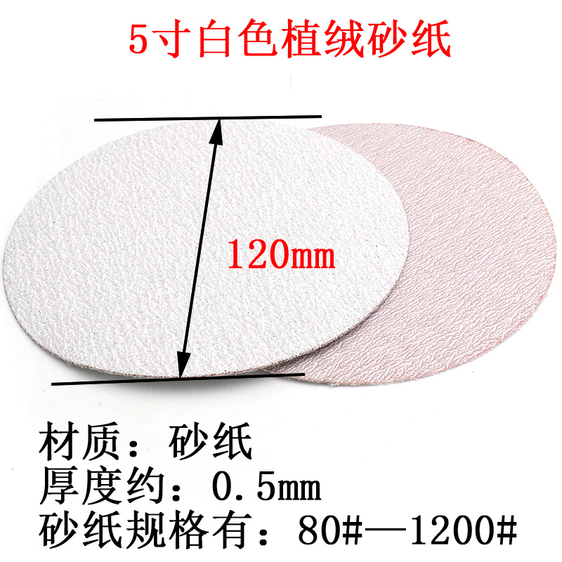 5 inch 125MM FLOCKING DISC white SANDPAPER FLOCKING sandpaper BRUSHED sheet ROUND sheet BACK flocking DISC sandpaper