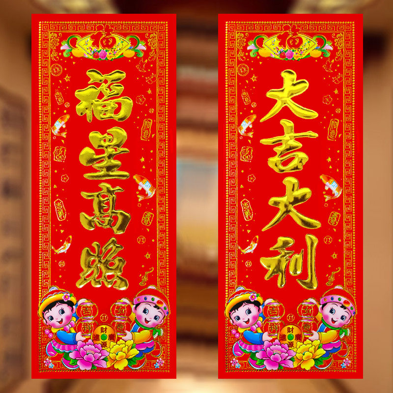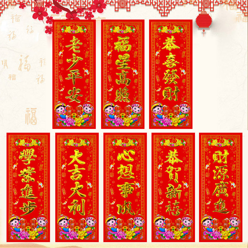 Spring Festival New Year goods Flocking Golden Hui Huichun four small couplets Vertical joint door stickers Spring strip money stickers Festive supplies