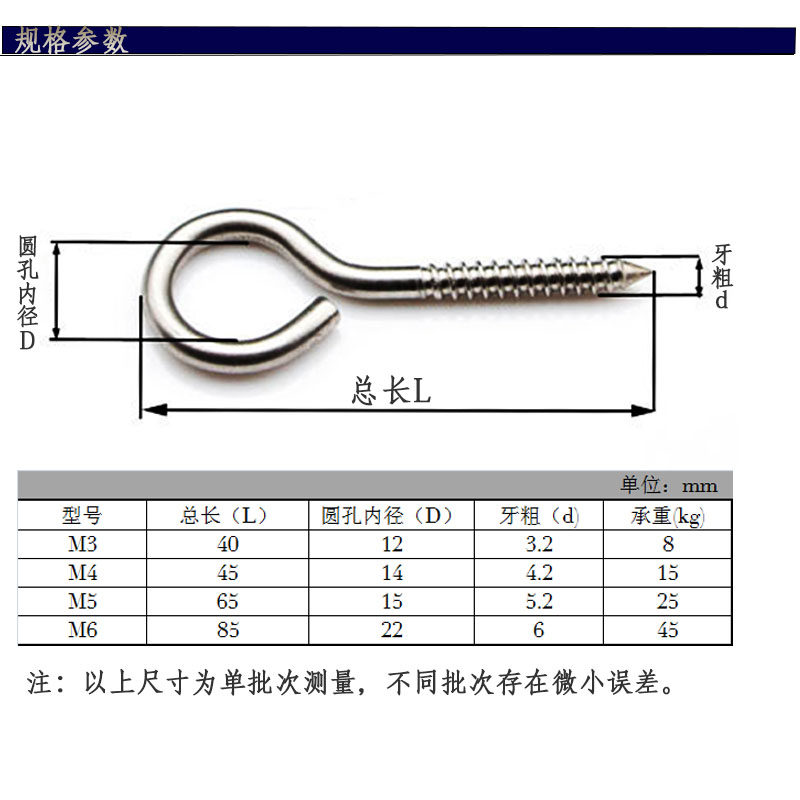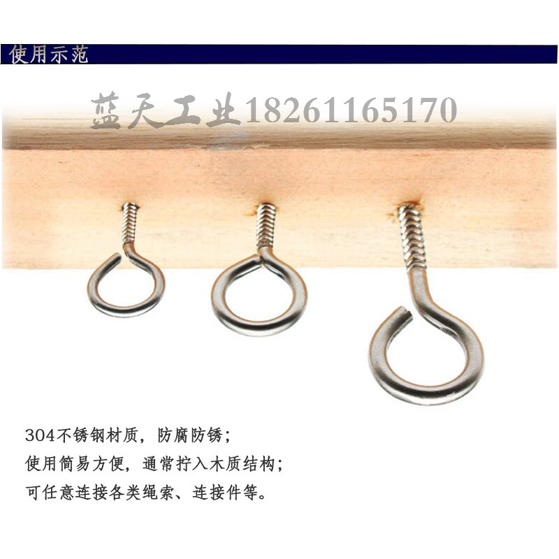 Sheep eye ring screw Self-tapping screw Hook M5 304 stainless steel circle ring lantern hook