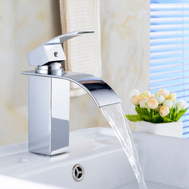 All copper household cosmetic room cold and hot waterfall faucet square wash basin bathroom counter basin wash basin water mouth