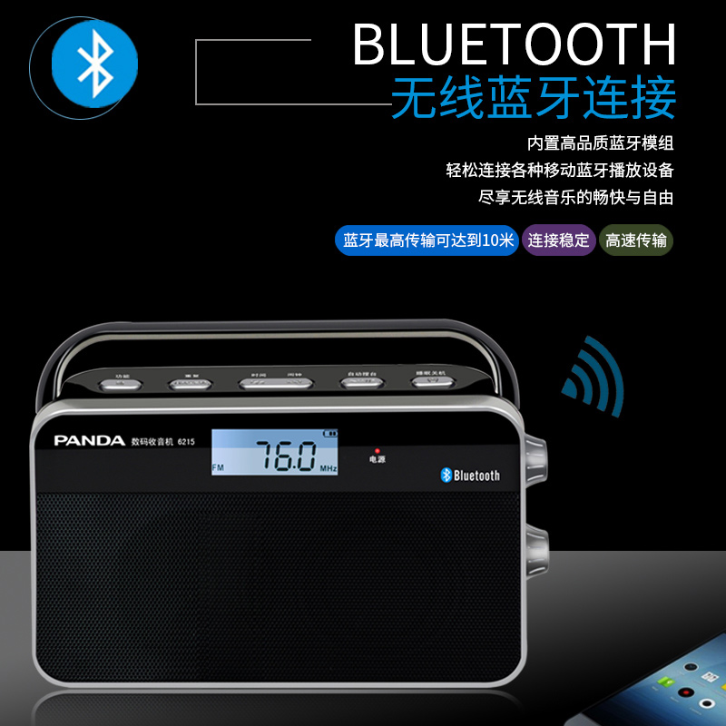 Panda 6215 semiconductor radio speaker integrated new fm elderly fm portable Bluetooth Rechargeable card radio player timing switch machine elderly listening machine