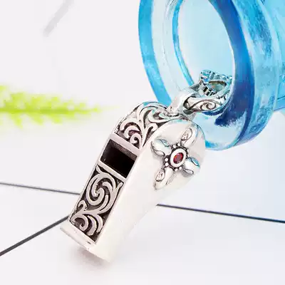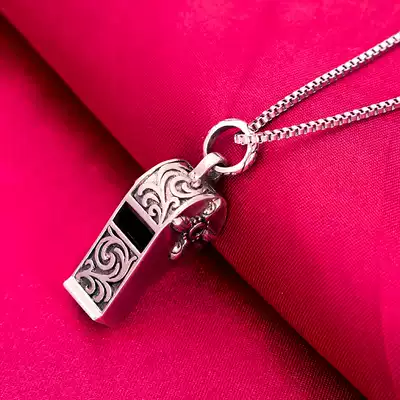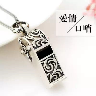 New 925 sterling silver vintage carved couple White whistle necklace can blow outdoor survival metal whistle