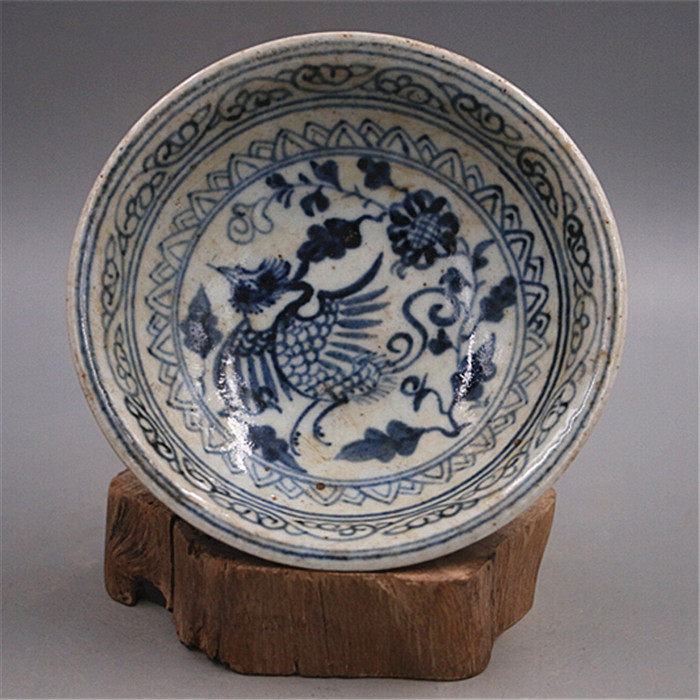 Ming blue and white crane high foot fruit plate antique antique antique antique antique porcelain all hand painting classical home decoration ornaments
