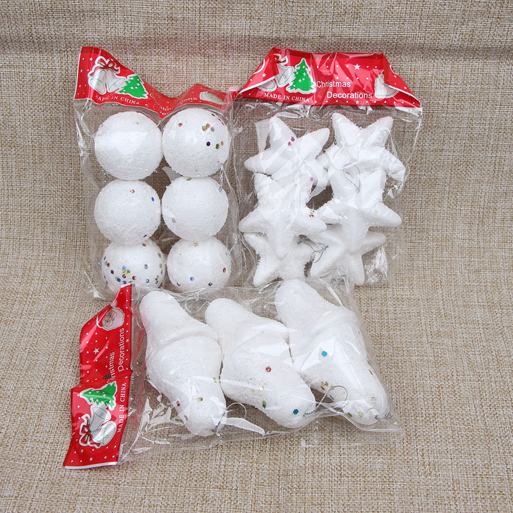 5cm White bell 1 pack of 6 3cm light balls 1 pack of 12 high 15cm Tree top star 1 high 10cm Tree top Star 1 3cm small gift bag 1 pack of 12 small chains 6 hanging ornaments
