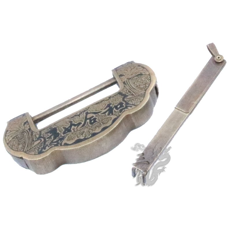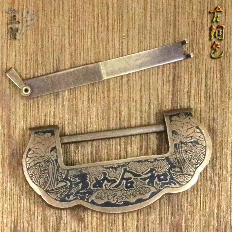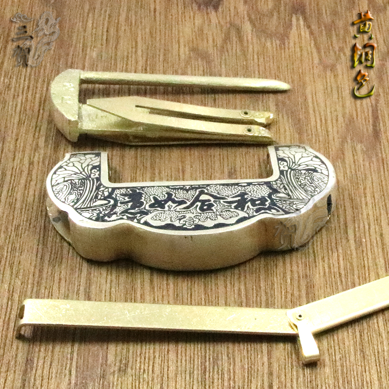 Chinese long life gold lock Yuanbao lock imitation ancient bronze padlock classical casting pure copper lock cross open padlock cabinet door old lock