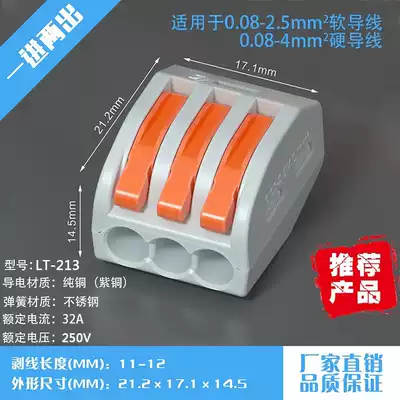213 three-hole one in two out multi-function wire connector quick connector Terminal soft and hard parallel 100 only