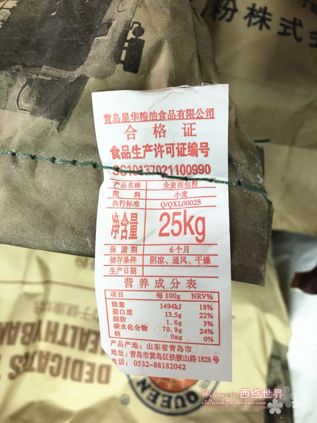 West Point World 1 12 Queen's special qualities All wheat flour 25kg fine Green line with wheat bran whole wheat toast powder