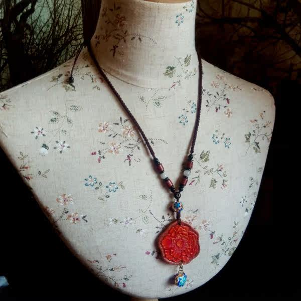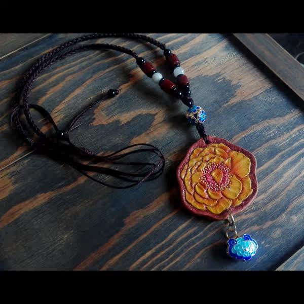 Handmade cowhide men's bags and women's bags high-end gifts custom-made cowhide carved and painted women's rose flower necklace pendant