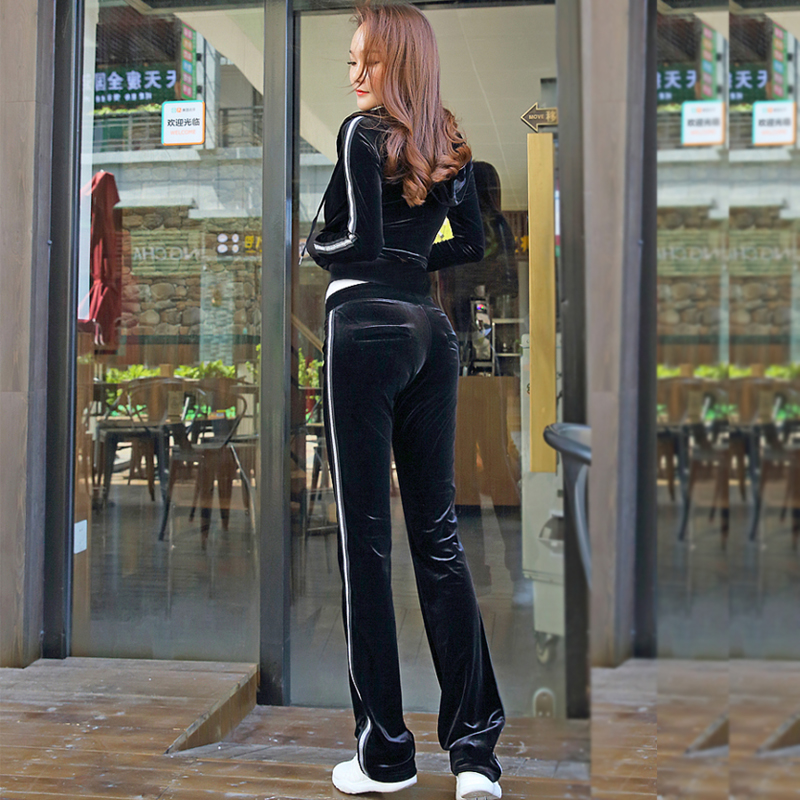 High-end gold velvet sports suit women's spring and autumn 2022 fashion casual wear hooded stand-up collar slim fit slim flared pants