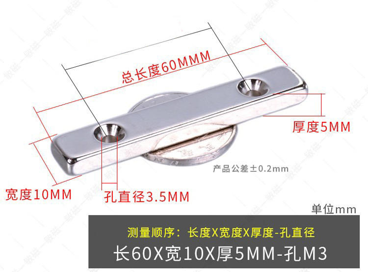 Strong magnet strong magnetic super strong magnet sheet rectangular magnetic strip iron-absorbing stone square with hole 60*10*5mm magnetic steel