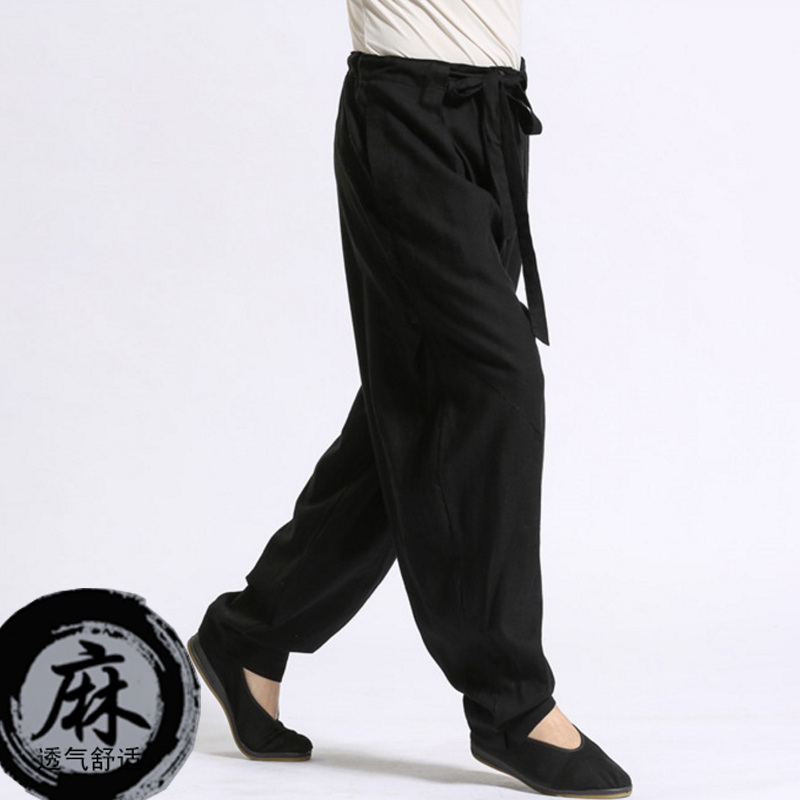 The Hemp China National Wind Long Pants Men's Retro Loose Casual Wide Pants Guese Mantra Taiji Cotton Linen Practice Pants