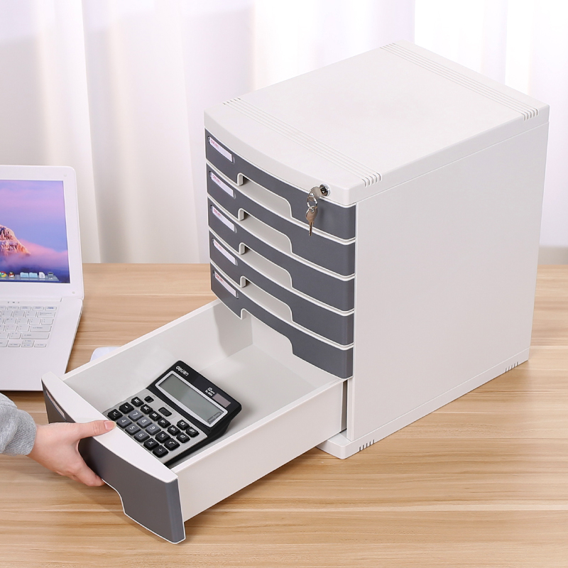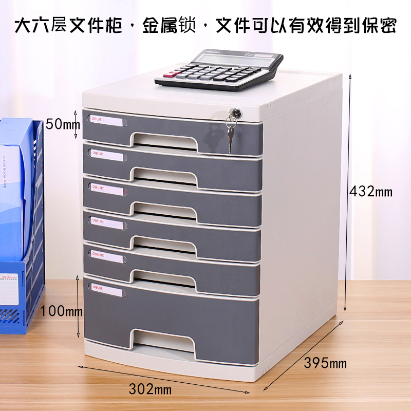 Deli Filing Cabinet A4 desktop six-layer locked plastic drawer type information office storage file box filing cabinet