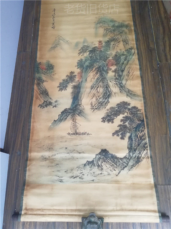 Old Antique Antique Calligraphy Painting Ancient Play Old Painting Bag Old Pure Handmade Painting Landscape Painting Canvas Strip Hanging Painting Collection