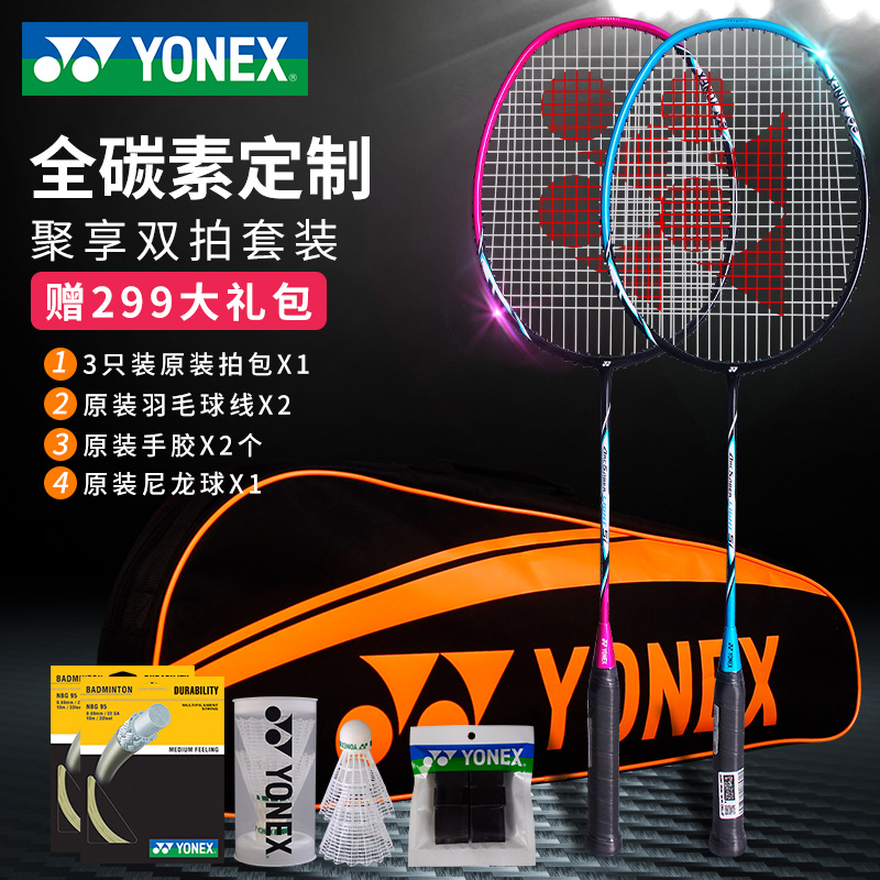 YONEX YONEX YONEX badminton racket flagship double shot all carbon fiber ultra light durable yy set