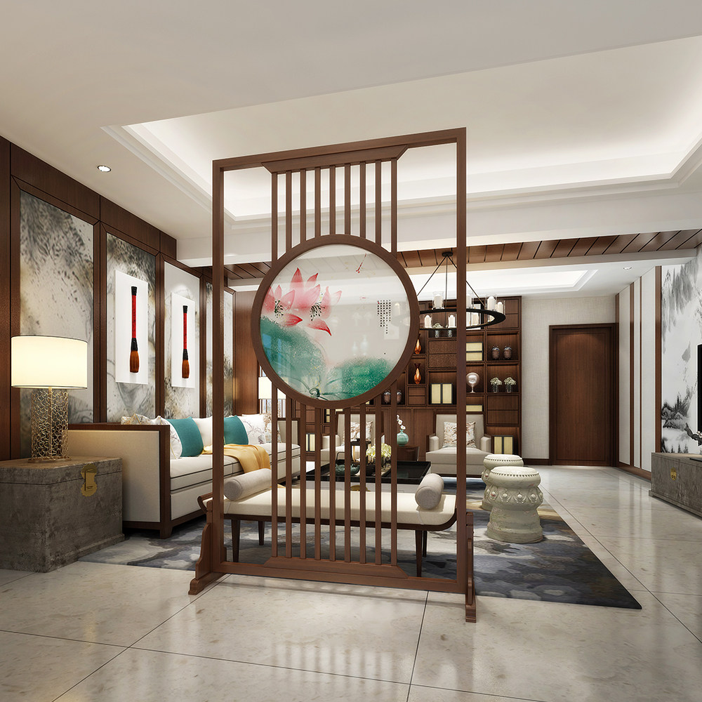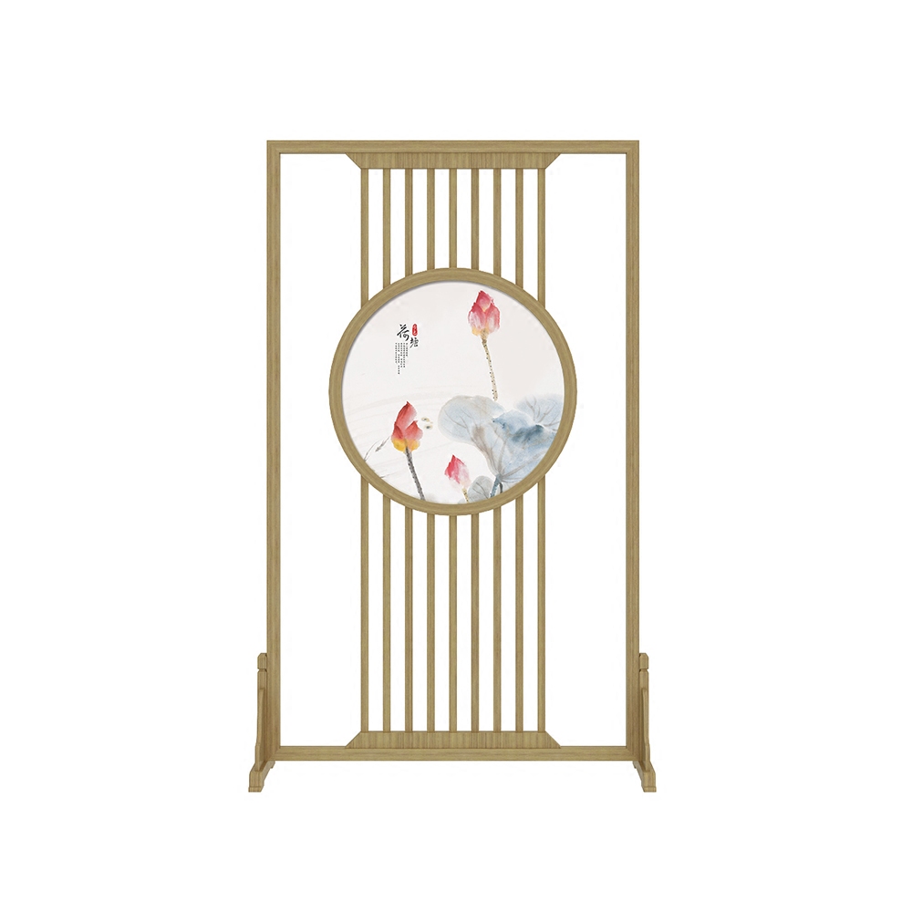 New Chinese solid wood semi-permeable partition screen Xuanguan Living room Custom mobile partition Lotus Flowers Pear Wood Holder