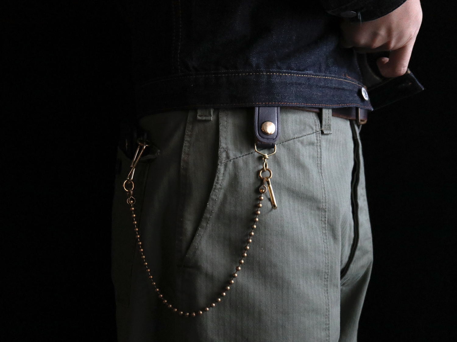 Hardwind Vintage Meta-Year Style Series Bull Leather Brass Beads Bracelet Waist Chain