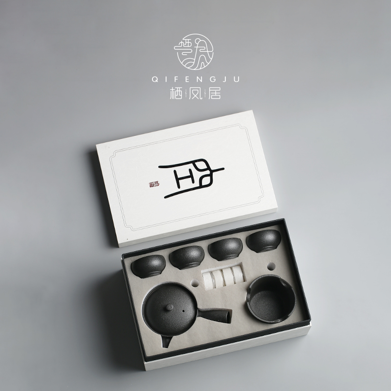Qifengju Japanese tea tray Ceramic tea table Warm tea tea set Gift box Gongfu tea set Dry tea set