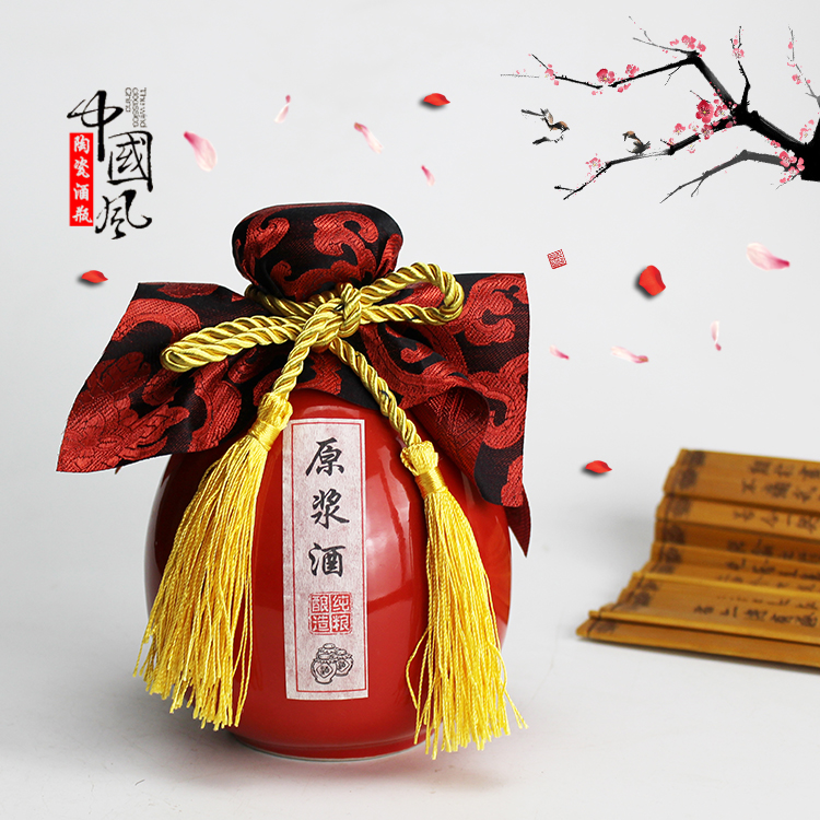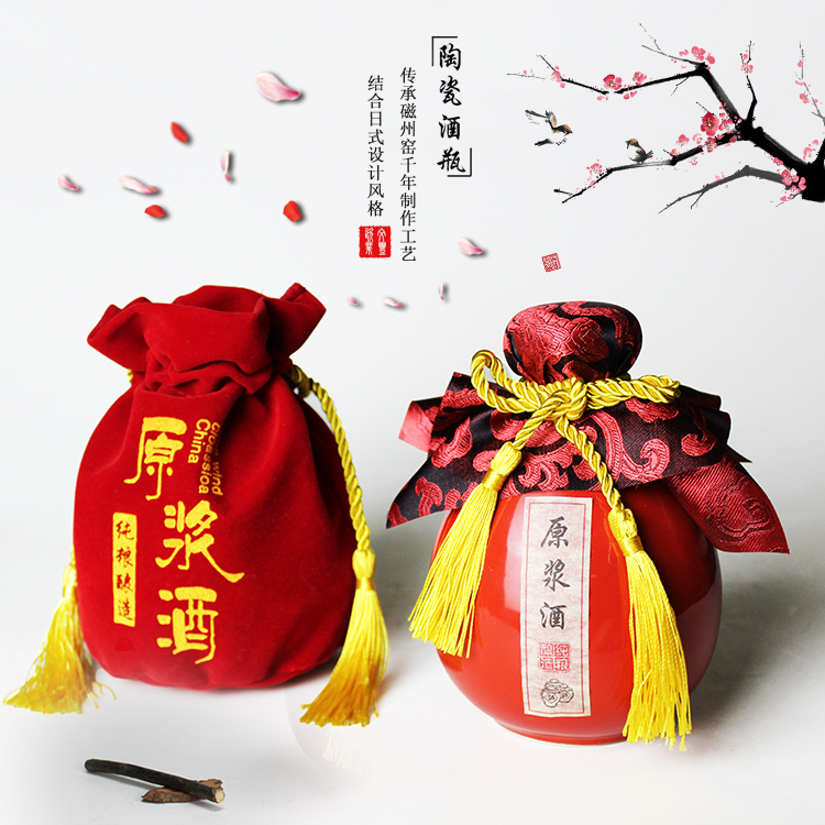 China red 1 jin ceramic wine bottle earth pottery blank wine bottle wedding banquet happy event birthday banquet special sealed wine bottle wine set