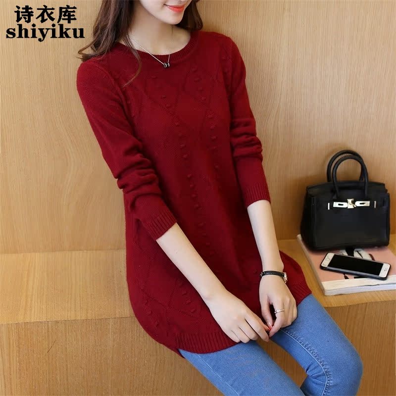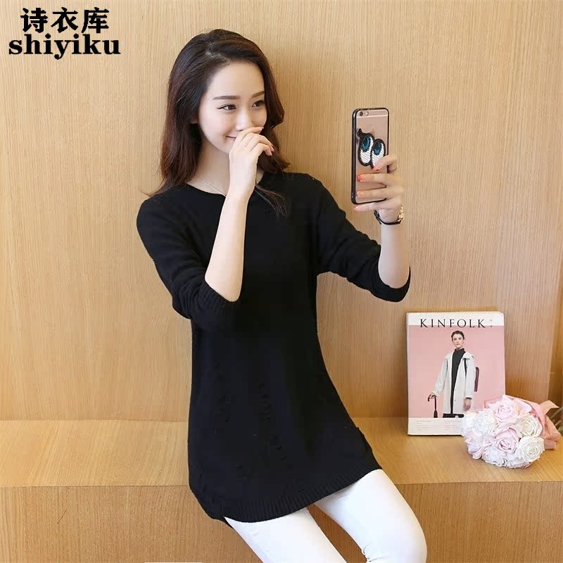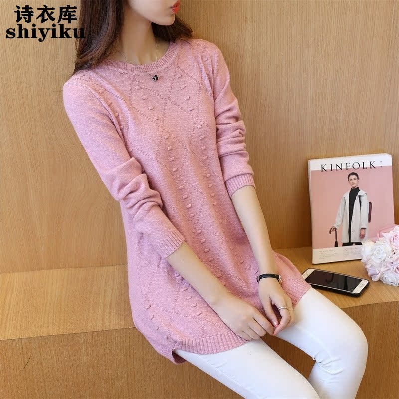 Sweater women's mid-length round neck pullover sweater 2020 spring and autumn new Korean version long-sleeved all-match solid color bottoming shirt