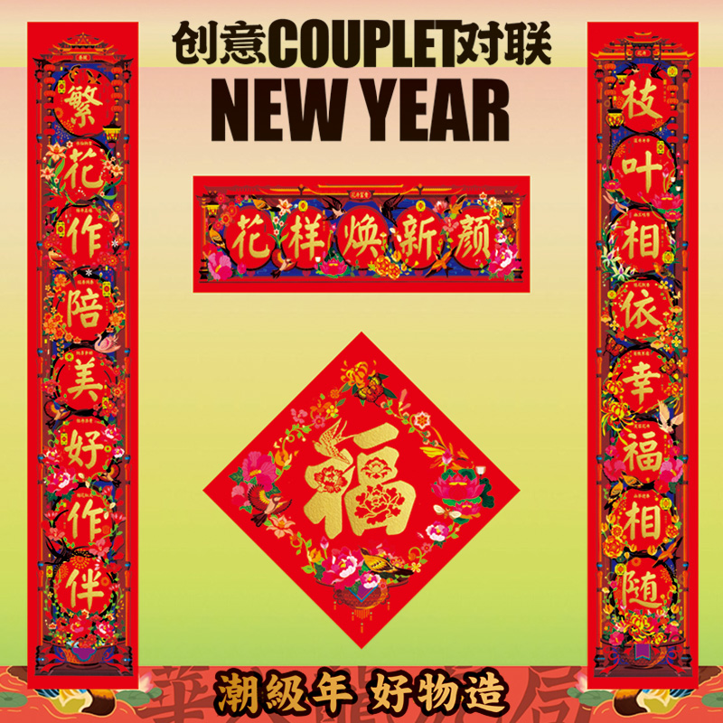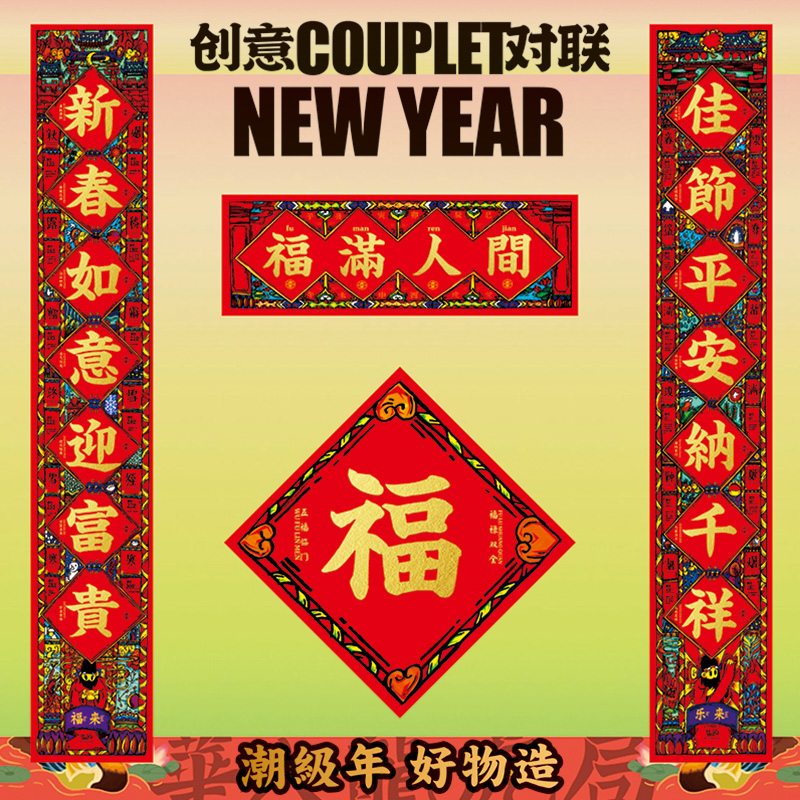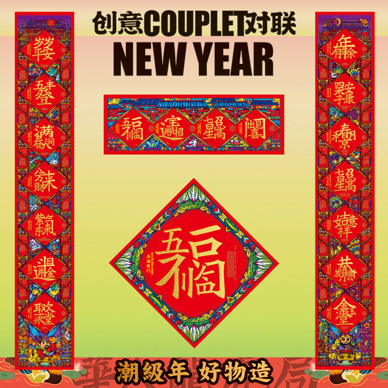 2024 Dragon Year Spring Festival couplets for creative country Chautide Palace Spring Festival couplets rural home doors New Year's New Year Door sticker Custom-Taobao