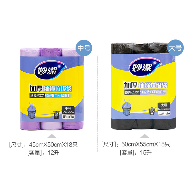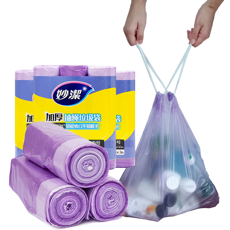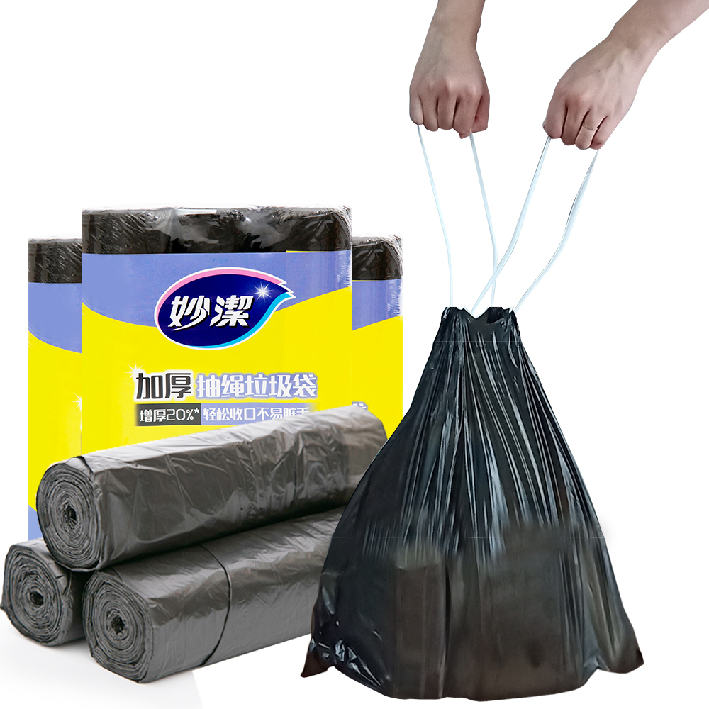 Miaojie drawstring garbage bag home with hand thickened disposable medium and large classification dry and wet plastic bag automatic closure