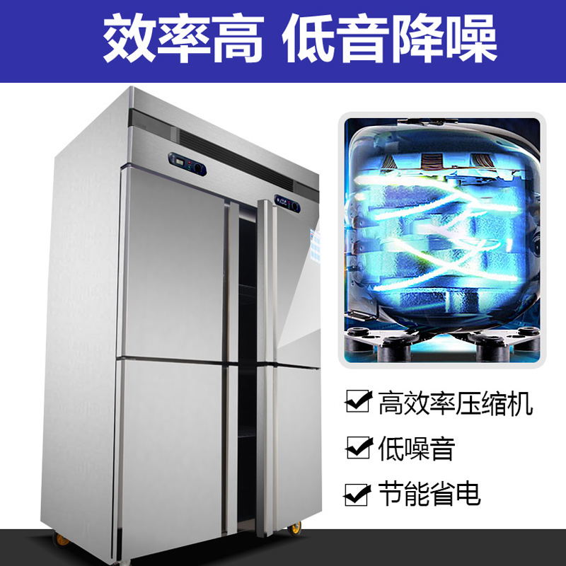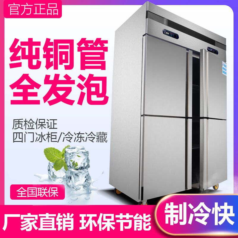 Commercial four-door freezer refrigerator four-door freezer refrigeration and freezing double machine double temperature preservation cabinet Vertical refrigeration and freezing