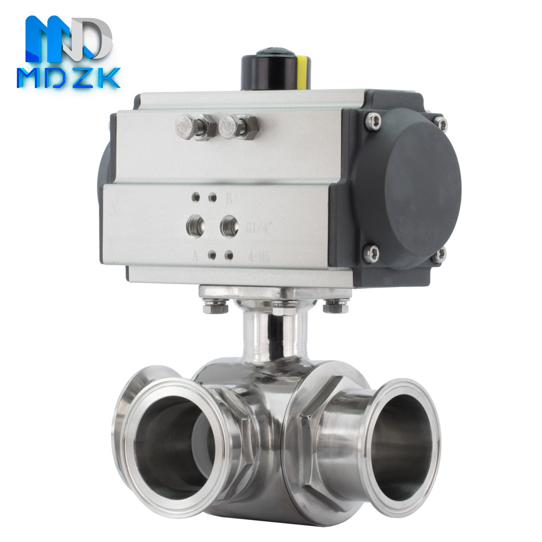 MDZK-AT-Q684 5F-16P PNEUMATIC SANITARY GRADE TEE BALL VALVE 304 STAINLESS STEEL HOOP FAST