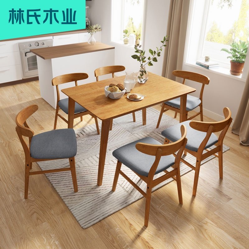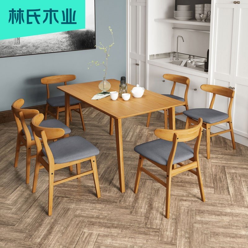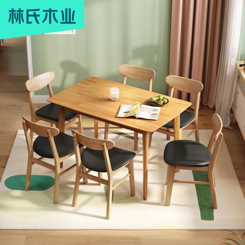 Lin's wood industry Nordic dining table and chair combination modern simple solid wood household small family table furniture LS003