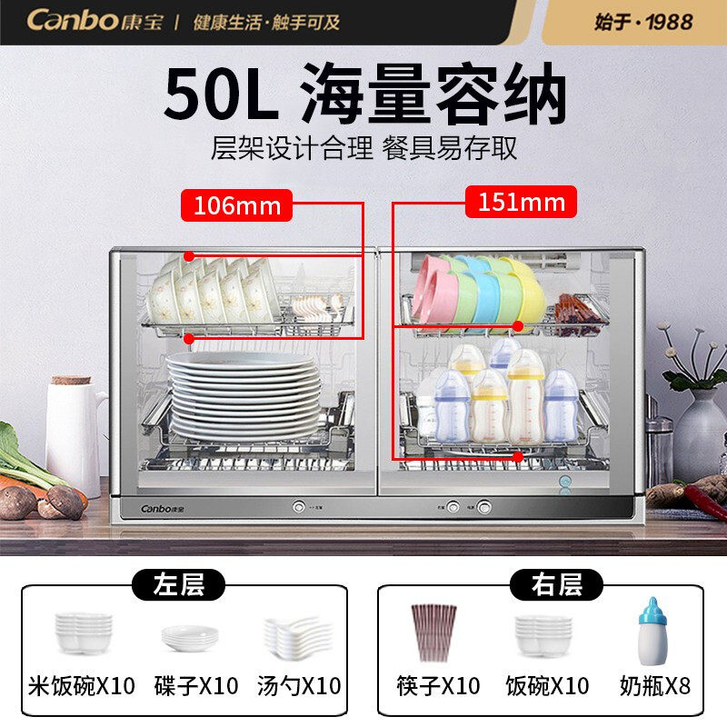 Kangbao XDZ50 - E4A wall mounted disinfection cabinet small household desktop disinfection bowl 2 star