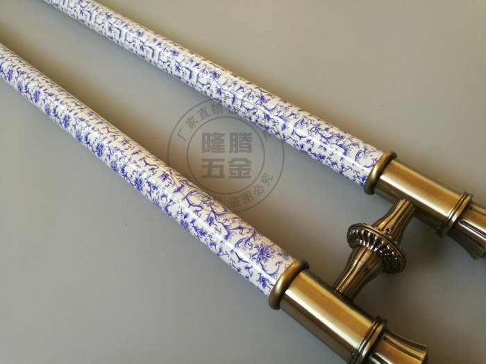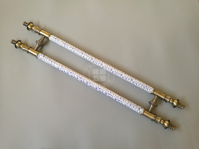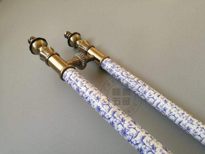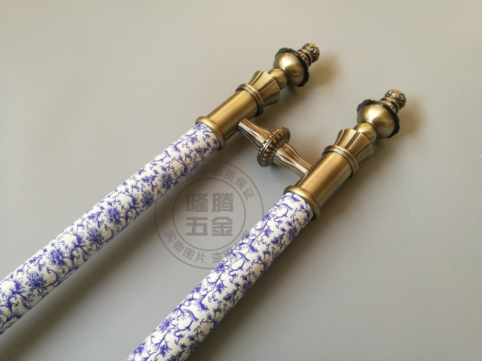 Blue Flower Porcelain Solid Wood Door Handle Antique Glass Door Handheld Door Handheld Handle Open