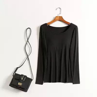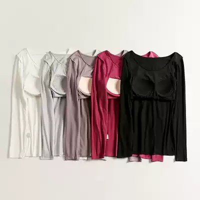 Women's autumn and winter solid color cotton with chest pad long-sleeved T-shirt slim-fit bottoming shirt outer wear bra cup one-piece autumn coat to keep warm