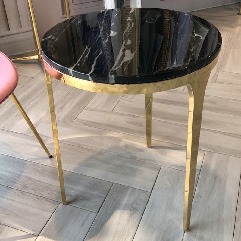 Exquisite sofa round edge a few corners a few stainless steel material mirror champagne gold modern minimalist metal small round few
