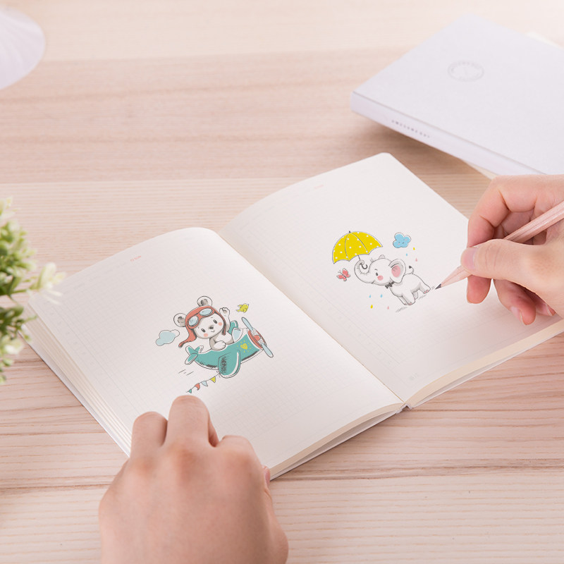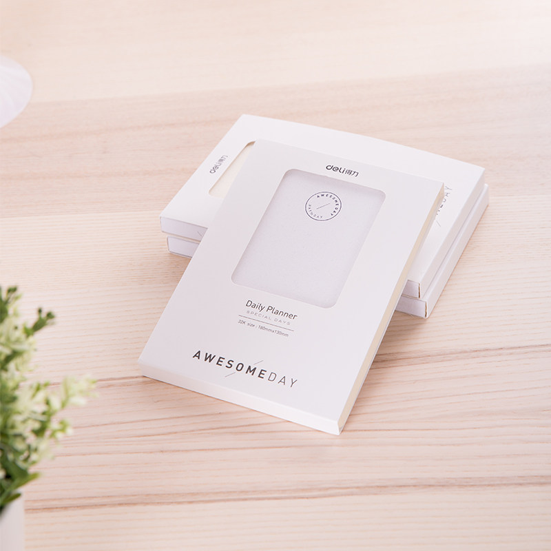 Deli Japanese hand book set University schedule plan cute Korean checkered hand book notepad thickened