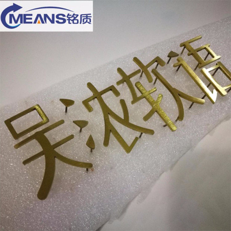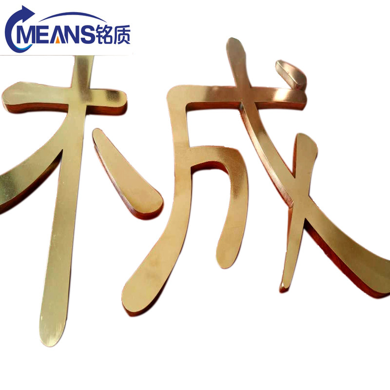 Stainless steel solid metal word yellow titanium rose gold black titanium seiko stainless steel brushed background wall advertising word custom