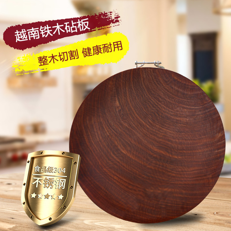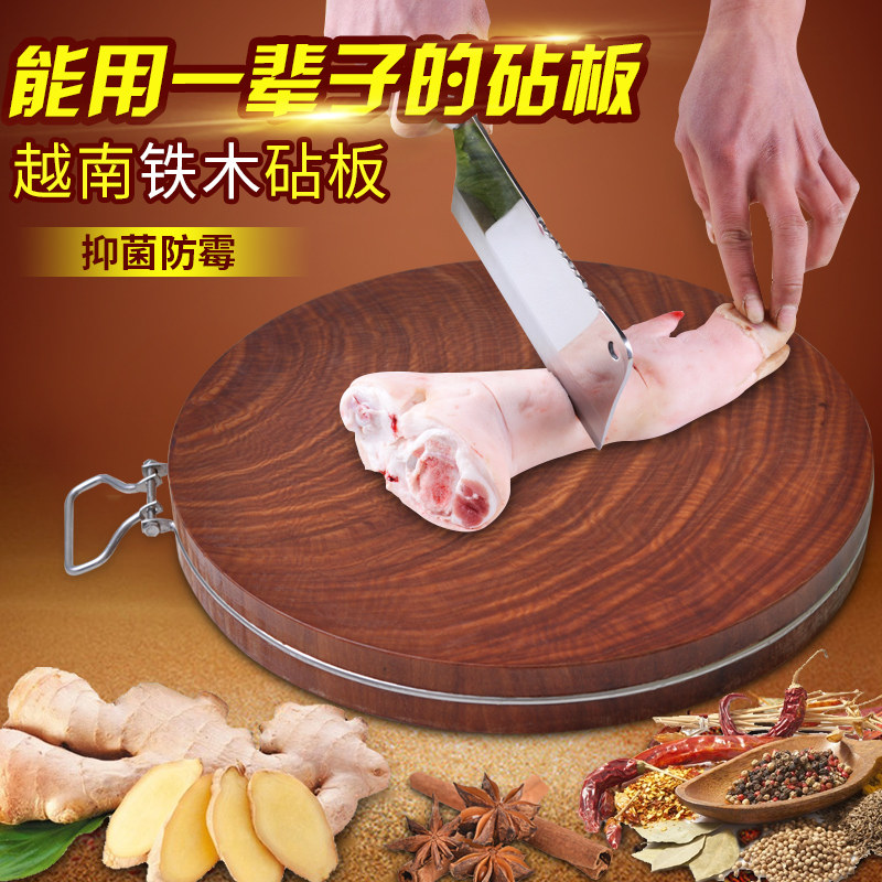 Authentic Vietnamese iron wood cutting board Solid wood whole wood antibacterial cutting board Kitchen household round chopping board Longzhou clam wood