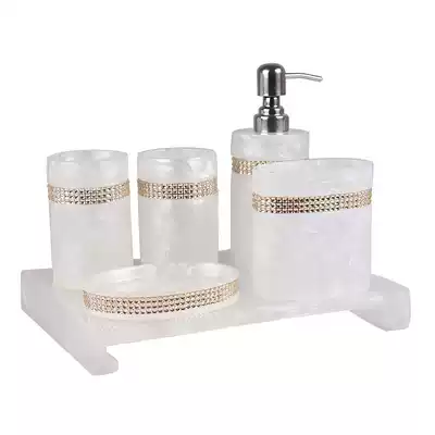 Champagne color transparent lemon yellow light gray silver yellow apricot color white white milky white five-piece square tray five-piece bow tray bathroom five-piece set bead with white pressing toothpick box beads