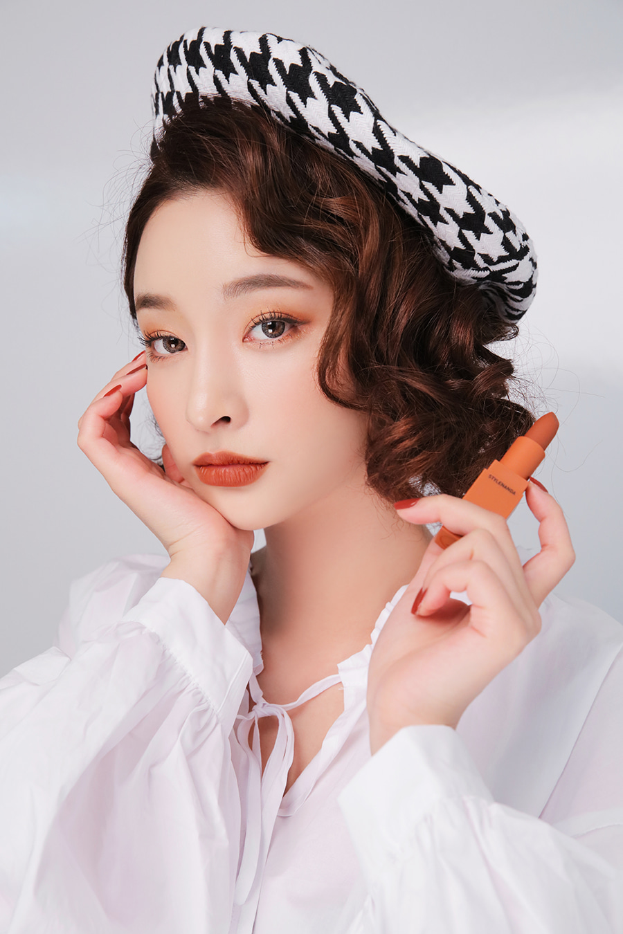 Matte and foggy face lipstick to the face.