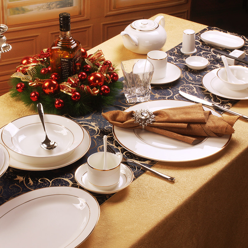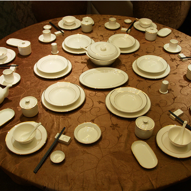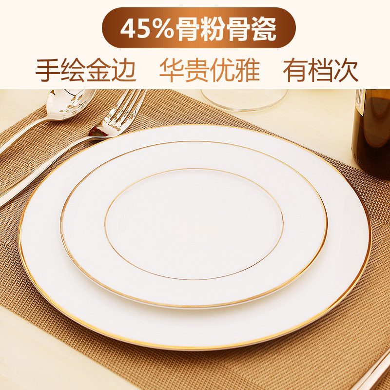 8-inch flat disc-Gold side 10 5-inch flat disc-Gold edge 12-inch large flat disc-Gold side 8-inch soup disc-Gold side 4 5 inches High foot bowl-Gold edge 4