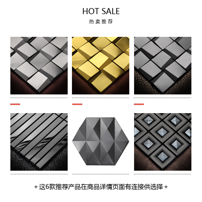 Mingmahui matte black metal stainless steel brushed mosaic tile background wall modern bump decorative wall stickers