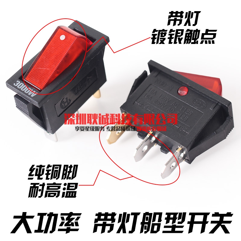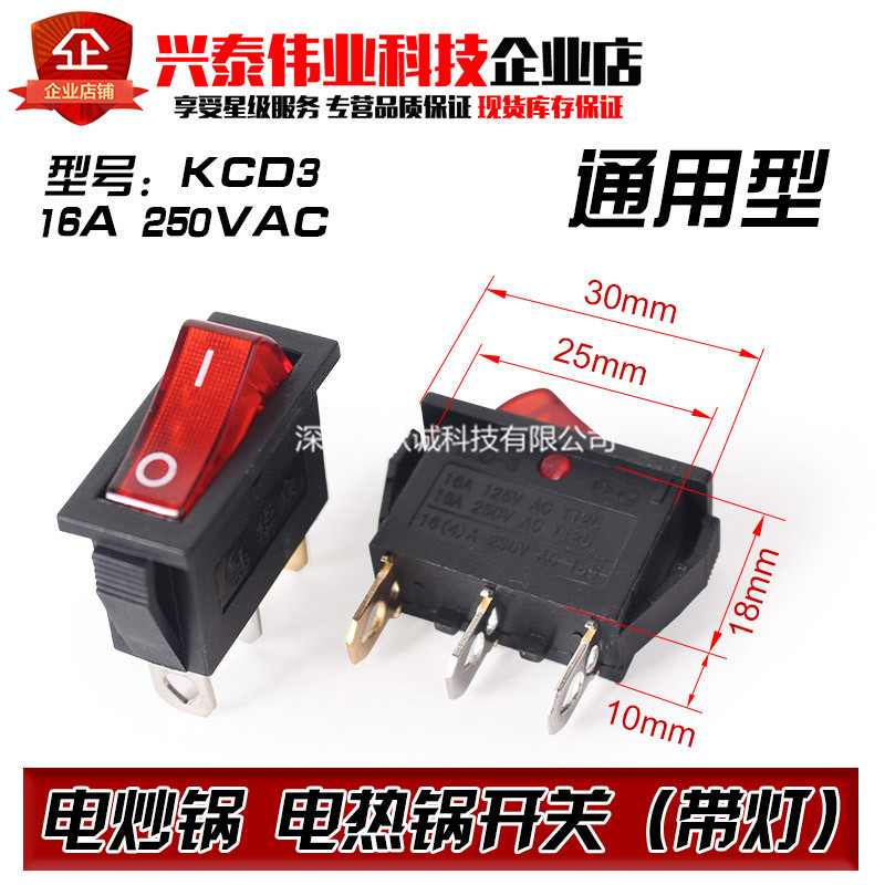 Electric frying pan switch electric pot universal switch KCD3 with lamp wane switch electric heat electric pot switch accessories button