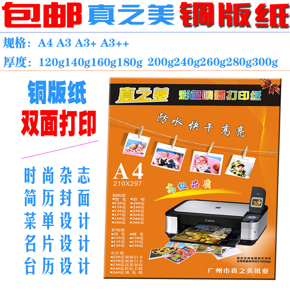 Coated paper a4 160 g 260 g A3 double-sided high-gloss photo paper color spray white card business card inkjet copper plate paper 300g