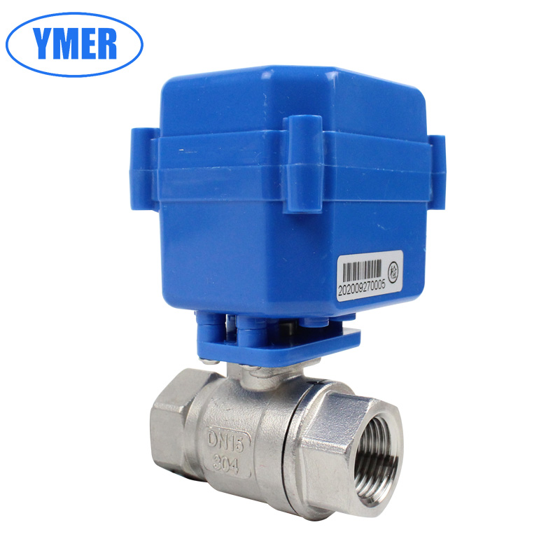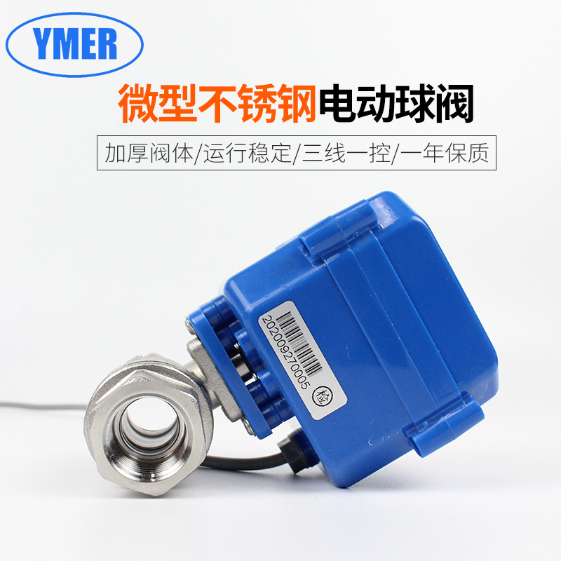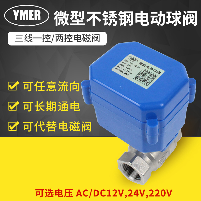 Miniature stainless steel electric ball valve three-wire two-control one-control fine small two-way two-way valve AC DC12 24V