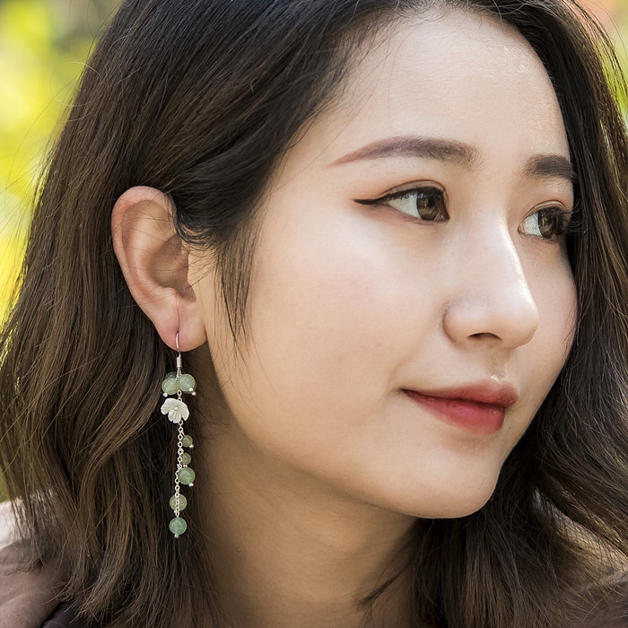 Green East Mausoleum Alloy Ear Hook Earrings Green East Mausoleum 925 Silver Hook Red Manau Style Alloy Ear Hook Earrings Red Manau Style 925 Silver Hook Pomegranate Stone Alloy Ear Hook Earrings Garnet 925 Silver Ear Hook Powder Coral