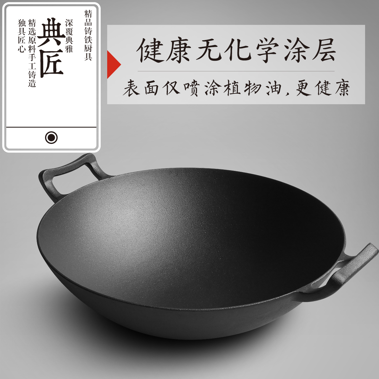Cobbler double ear cast-iron pan frying pan 40cm old-fashioned thickened round bottom home frying pan without coating without dipping into the pan raw iron