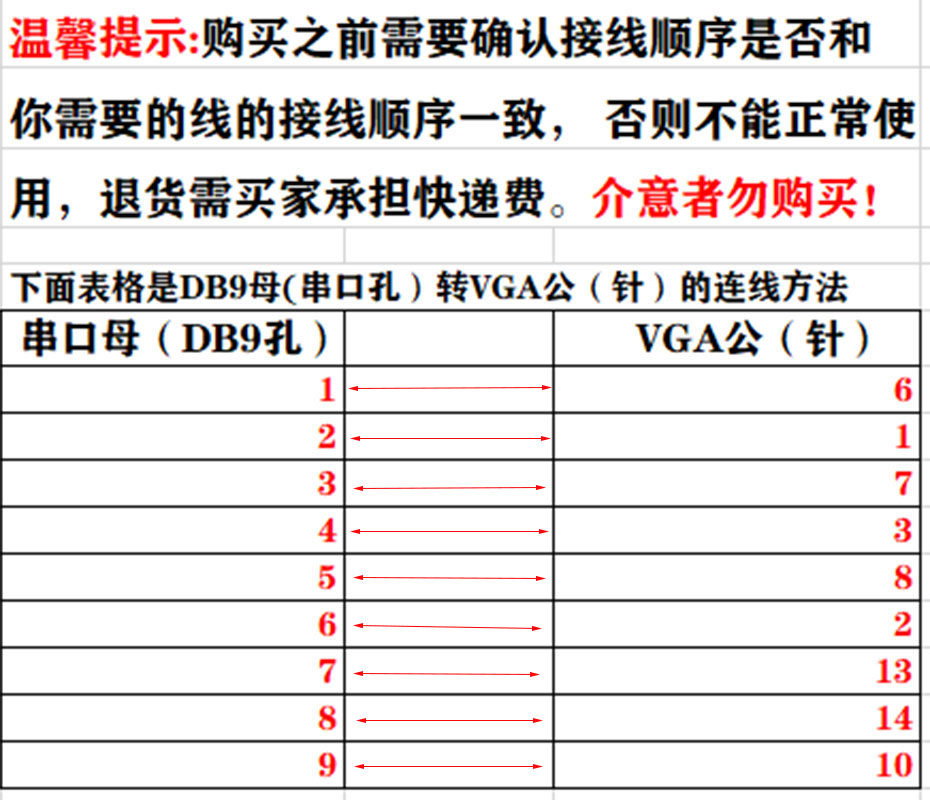 15-pin to 9-hole cable VGA revolution to serial port bus 232 lines 15-pin to 9-hole cable Pay attention to the line sequence connection