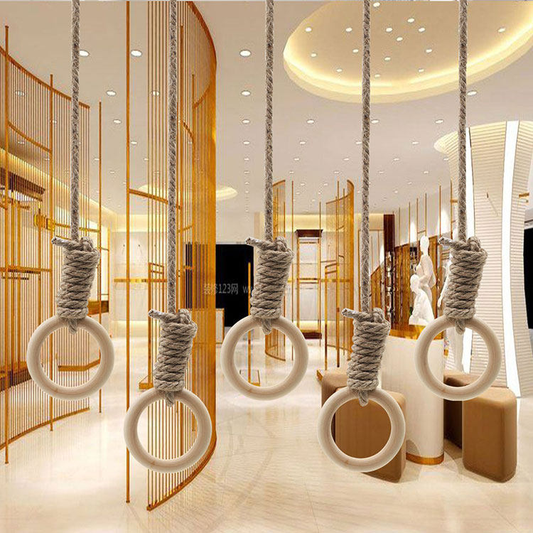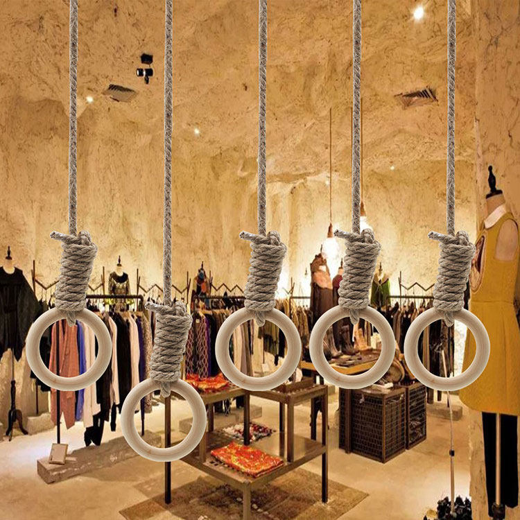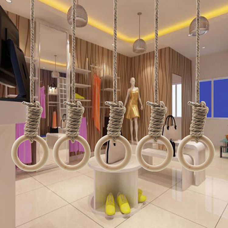 Hemp rope solid wood big circle retro old clothing store display rack shop decoration solid wood hemp rope hanging ring hanger