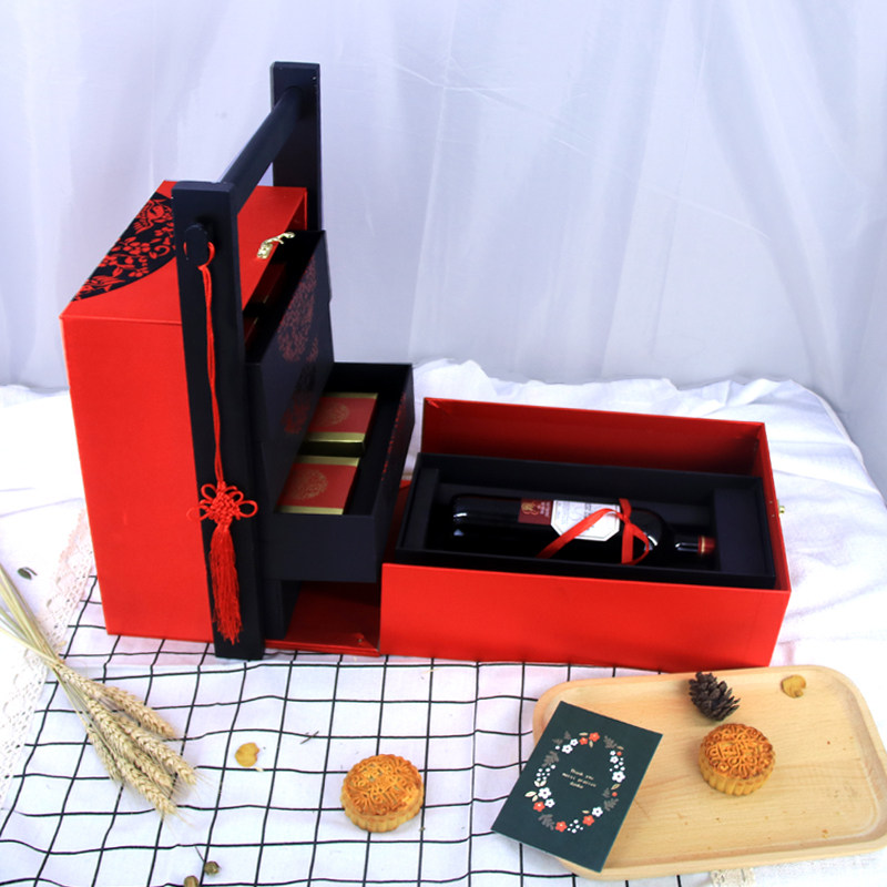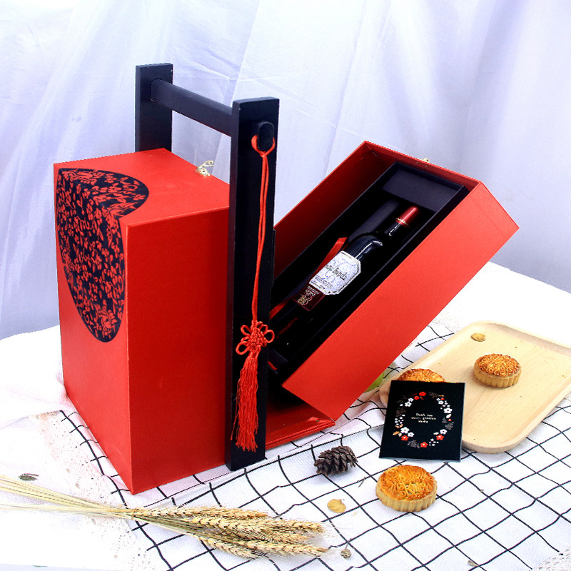 Wooden portable New Year red wine packaging box Spring Festival high-end business gift box empty box tea gift box customization