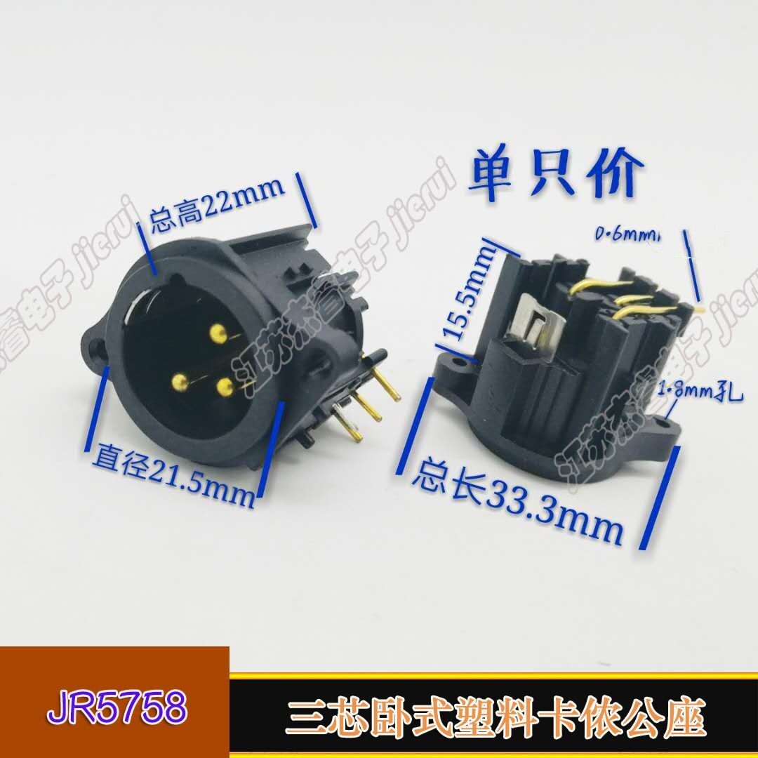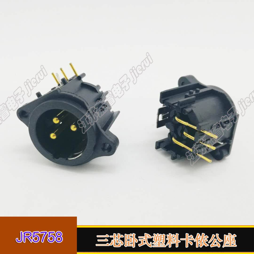 Three-core horizontal Carnon-male head microphone plug three-core Cannon public seat balance plug-in mounting welding caron base