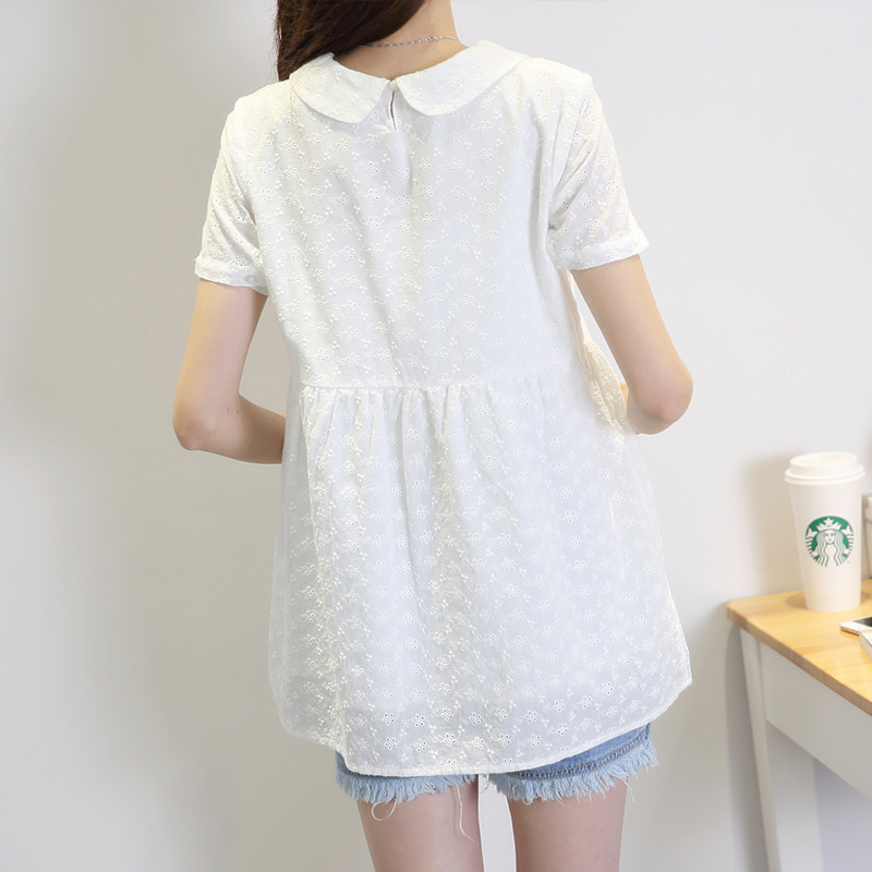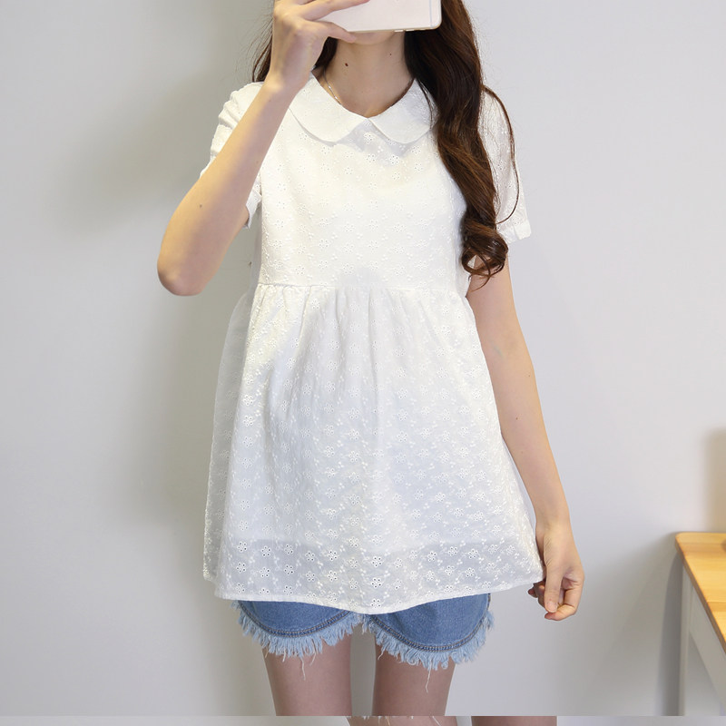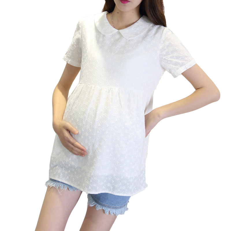 2022 Summer Short Sleeve Pregnant Woman T-Shirt Doll Collar All-cotton Short Dolls Shirt Inside A Shirt Gestation Maternity Dress