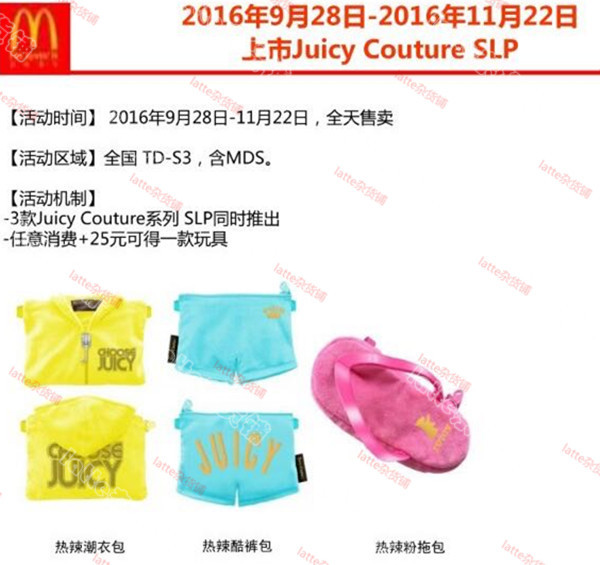 2016 McDonald's Juicy Couture Series Cosmetic Bag Hot Tide Pants Bag Handbag Toys